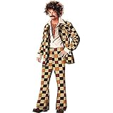 This could very well be the guy your Mother always warned you to stay away from.? The Disco Sleazeball costume includes sleeveless shirt, plaid leisure jacket with attached shirt cuffs, matching plaid flair pants and porn moustache.? Finish this guy off with a wig, gold necklace and even a hairy chest from our accessories section and you will have the ladies running!!!