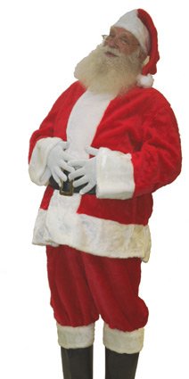 Deluxe Pile Plush with Deluxe white pile plush trim. Suit includes: Zipper Coat with Belt loops, Pants, Hat with large pom-pom, Bound Belt with loop and Gilt Buckle with prong. Deluxe vinyl Boot tops with Deluxe pile plush and white knit gloves. This is a really nice mid-grade unlined suit. We currently carry 4 sizes: Large (46-54 chest, up to 46 inch waist) Large also fits a 38-45 chest with a belly pad, XL (55-60 chest, up to 54 inch waist), XXL (61-66 chest, up to 58 inch waist) XXXL (67-73 chest, up to a 62" waist). CenterBack-Sleeve measurements: Large=35 1/2 inches, XL, XXL, XXXL=42 inches These are REAL measurements taken with a TAPE MEASURE, not approximations so if you want to know which one fits you, measure yourself with a tape measure. Wig & Beard are sold separately.This is a private label item - not sold to any other vendors. Do not accept substitutions. Therefore, make sure you buy it from Planetsanta on Amazon